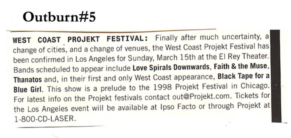 The Los Angeles Projekt Festival: Faith & the Muse with Black Tape for a Blue Girl, Love Spirals Downwards @ Coven 13 – Los Angeles, CA 3.15.98